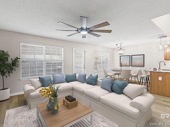 This charming 3-bedroom, 2-bath home in Foley's Hampton Park subdivision is full of character and feels almost brand new. Offering approximately 2,109 sqft of living space, this home features an open-concept design with vaulted ceilings in all the main living areas, making it feel light, bright, and spacious. The split-bedroom floor plan provides privacy, while the new flooring, fresh interior paint, and updated light fixtures give the whole home a modern, clean feel. The sunroom stretches across the back of the house -- the perfect spot to sip your morning coffee and listen to the birds. The home also comes equipped with a whole-house generator and sprinkler system for added peace of mind. Warm, cozy, and meticulously maintained, this home is truly move-in ready and waiting for you. Schedule your private showing today! Buyer to verify all information during due diligence.