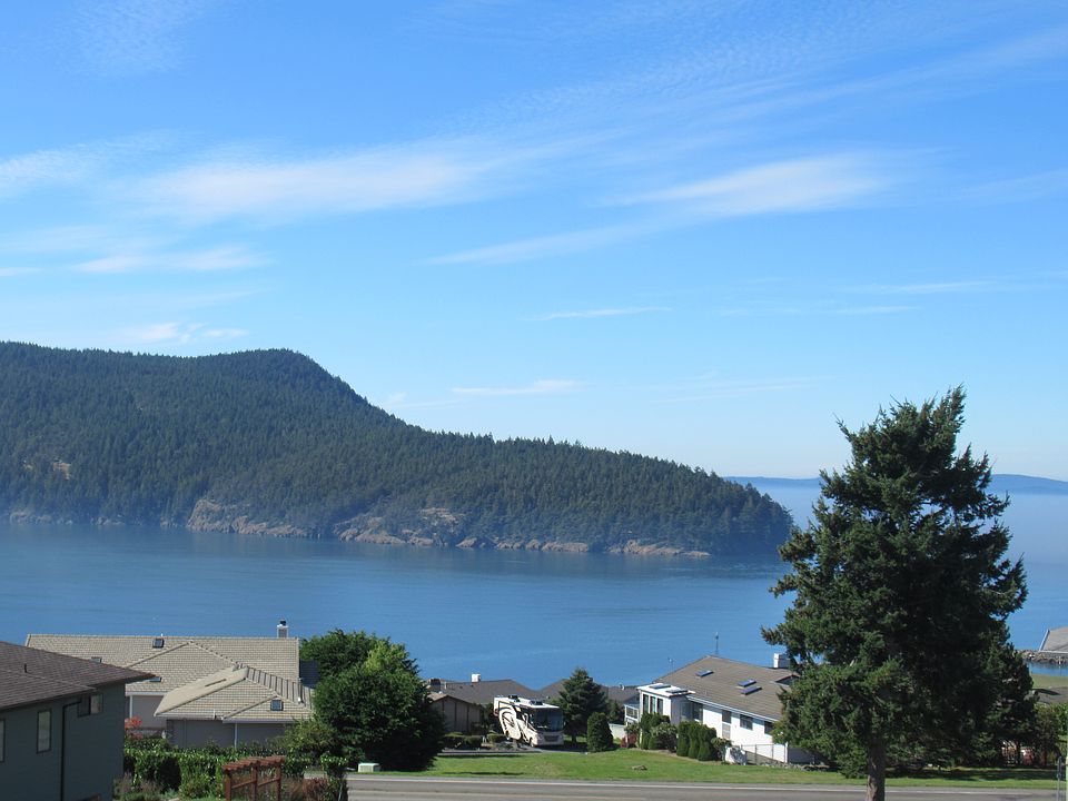 Enjoy the amazing water, island and mountain views from both levels of this expansive daylight basement home. Spacious rec room downstairs with pool table. Sunroom, large deck and covered patio areas all take advantage of the views as well. Gas heat. 2 car garage plus workshop. Approx 3920 sq. ft.