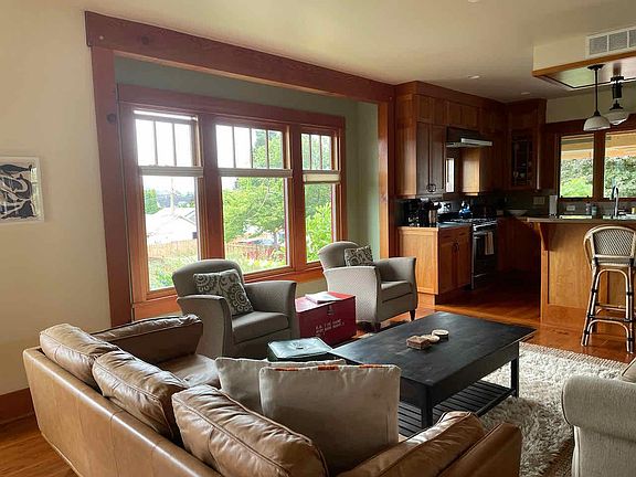 Our Sunnyland home is available for rent beginning July 1, 2022 through June 2023. It's a three story Craftsman from 1916, remodeled from top to bottom with modern amenities. We have on demand hot water, radiant and ductless mini-split heat, central AC, solar panels, EV charging station. There are 4 bedrooms, 3.5 baths, home office, den/playroom, open floor plan on main floor with dining room, kitchen and living room. Single car garage plus additional parking off the alley. Extensive gardens with fruit trees that include peach, cherry, apple, plum and fig, in addition to grapes, blueberries, strawberries and raspberries. The fully fenced backyard has a grassy area, along with a covered and heated deck with great views of Galbraith and Chuckanut Mountains. The neighborhood is close to downtown and only blocks from Trader Joe's, breweries, restaurants, Broadway and Memorial Parks, and the Railroad Trail. Sunnyland School (newly remodeled) is 3 blocks away. The house can be rented furnished - we are open to discussing the best furniture configuration to accommodate your needs. Rent is $4k plus utilities. Upon lease signing, we will require one month's deposit as well as last month's rent. Pets considered. Please send us an email describing yourself and why this house fits your needs for a one-year lease (possibly longer). We look forward to hearing from you! Pets considered on a case by case basis, with additional fees.