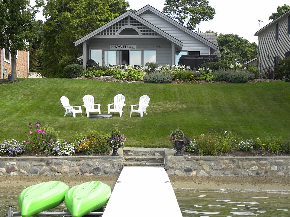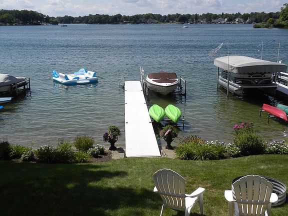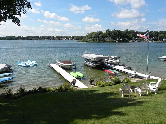 Located on one of the best lots on private, all-sports Williams Lake, this beautiful, well maintained, lakefront home provides panoramic breathtaking views of the water and affords buyers a wonderful sandy beach, sandy frontage and spectacular sunsets. Feature include the kitchen with breakfast bar, buffet area, and a pantry which is open to the spacious great room and dining room, both with large windows and doorwalls leading to the virtually maintenance free composite deck overlooking the water. Off of the great room, with a gas log fireplace, are 2 nice sized guest rooms and the master suite with a doorwall providing a water view and a master bath with ceramic shower. The guest rooms share the additional full bath featuring a large soaking/jetted tub. Additional amenities include an attached 3 car garage with pull down stairs for attic storage, a second 2 car heated garage with a workshop/workout area, covered walkways and sitting areas, stunning gardens teaming with perennials & much more.