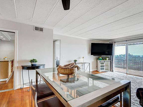 Million Dollar VIEWS of the City, River and hillsides of Cincinnati and NKY from this Top Floor Condo that has been freshly painted from top to bottom and has beautiful hardwood floors throughout main living areas and bedrooms along with a balcony spanning the living room and primary bedroom to enjoy the views morning and night. And all just minutes to downtown Cincinnati or NKY. This community also has a pool with views of the City, laundry onsite and allows for rentals so a great opportunity for investors or owner occupied. Unit also comes with 1 Assigned parking space