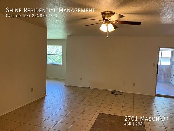 Welcome to this beautiful 4-bedroom, 2-bathroom home located in the vibrant city of Killeen, TX. This property boasts new wood flooring in all bedrooms and closets, a range of modern amenities designed for comfortable living. The kitchen is equipped with a dishwasher, stainless side by side refrigerator, microwave vent hood, making meal preparation a breeze. The living area features a cozy fireplace and ceiling fans, ensuring a comfortable atmosphere all year round. The flooring is a mix of tile and wood, adding a touch of elegance and warmth to the home. The house also includes a 2-car garage with openers, providing ample space for your vehicles and storage needs. The property also features a sprinkler system, ensuring your lawn stays green and lush. The enclosed patio is perfect for enjoying the outdoors in privacy. This home is a perfect blend of comfort and convenience, making it a great choice for your next move.