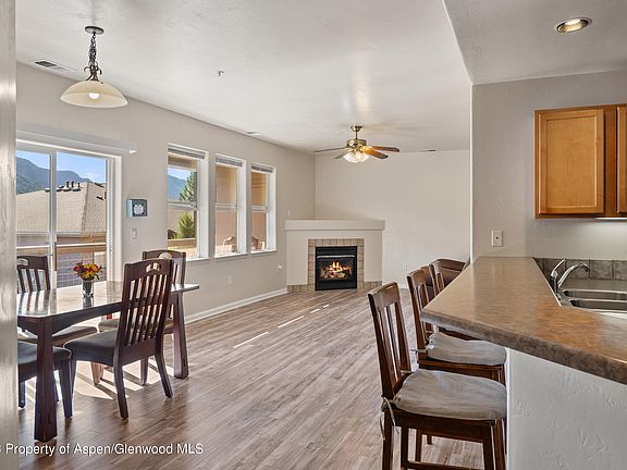 Well maintained 1579sf 3 bedroom 2 bath corner unit on the second floor. Gracious floor plan with living room, dining area and kitchen that open onto the large covered deck & storage with mountain views. Great location with quick access to Hwy 82, trails, parks, bike path, shopping, restaurants, and schools. Includes central A/C, laundry room and tandem two car garage.