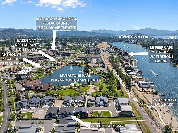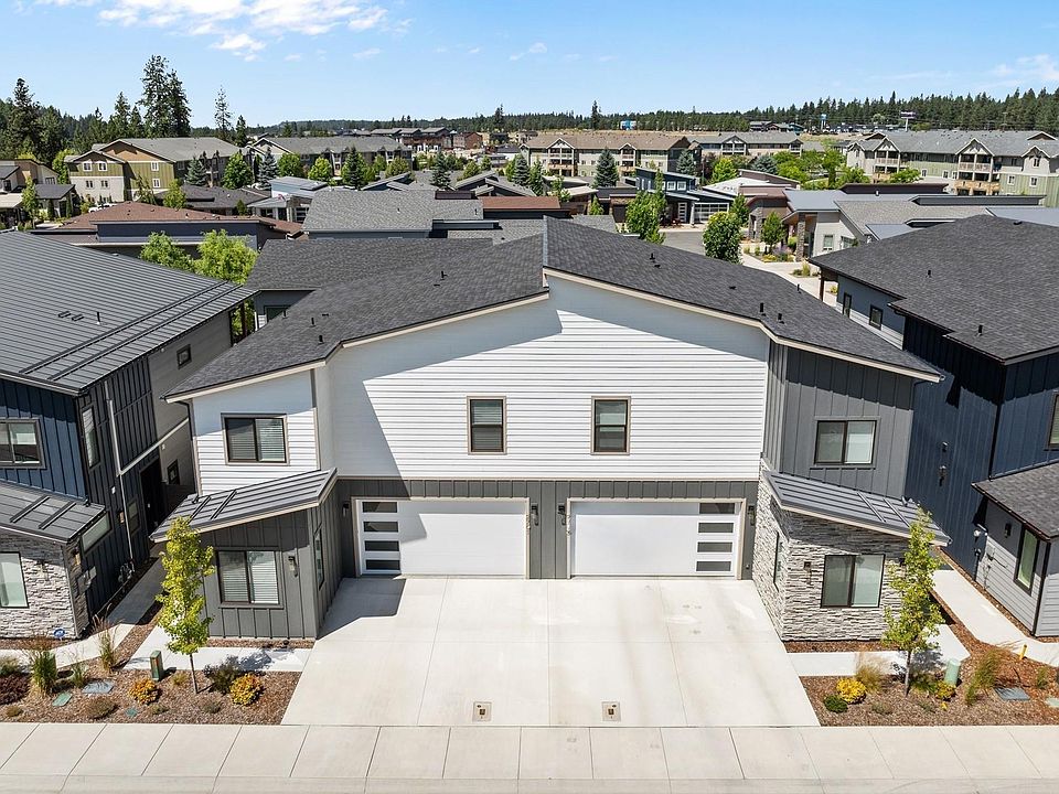 Welcome to The District's Contemporary Townhome. Riverstone's newest exclusive gated community offering urban living at its finest. Ideally located just steps to Riverstone Park, the Centennial Trail, and the Spokane River with the waterfront people and dog parks... this unique development blends luxury with convenience. This over 1,900 sf single-family attached townhome features 3 bedrooms (large Primary Suite on 2nd level), 3 full baths, and an upstairs loft with covered deck and peeks of the River! Enjoy designer touches like a custom tile fireplace, quartz counter tops, and a spa-style walk-in tile shower in the primary suite. Built for healthy, efficient living with LEED certification, EPA Indoor AirPLUS, and enhanced insulation to reduce utility costs and support a healthier lifestyle -- all with low-maintenance living and low HOA dues. Ready to start your new lifestyle in this stylish newer Townhome in the heart of it all.