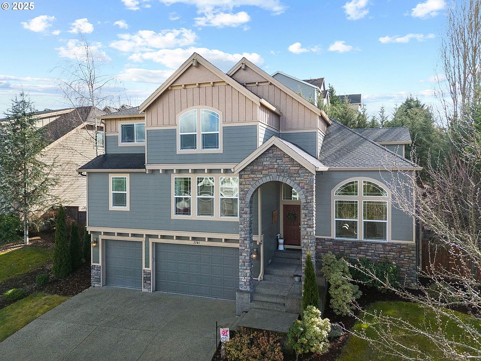 Nestled in the highly sought-after Mt. Vista neighborhood, this stunning 5-bedroom home boasts breathtaking territorial and Mt. St. Helens views along with an unbeatable location near scenic walking trails, major freeways, shopping, and WSU Vancouver. Step inside to soaring ceilings, abundant natural light, and an open, airy layout designed for both comfort and functionality. The main level features a spacious primary suite and a versatile office or additional bedroom. Upstairs, you'll find three generously sized bedrooms plus a large bonus room—perfect for a home office, playroom, or media space. The recently updated, open-concept kitchen seamlessly flows into the dining and living areas, creating an ideal setting for entertaining. Fresh interior paint and brand-new luxury laminate flooring add to the home's updated feel, while the oversized, private backyard offers endless possibilities for outdoor enjoyment. As an added bonus, a brand new park is coming soon right across the street! Don’t miss this rare opportunity to own a home that combines stunning views, thoughtful design, and an incredible location.
