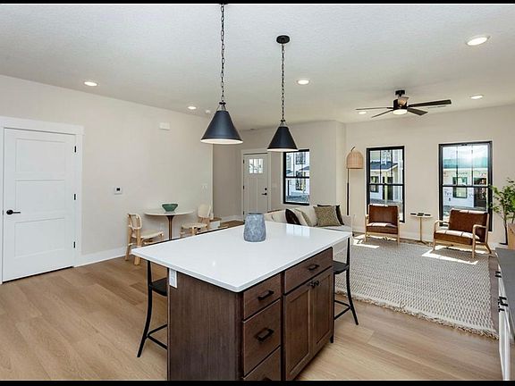 Welcome to the heart of the Prairie Trail in Ankeny. You are within walking distance to the Plaza Shoppes, Cascade Falls Aquatic Center, Hyvee, the Iowa Clinic and The District at Prairie Trail, the destination entertainment for all of Des Moines. This end unit features extra windows, high end finish with beautiful Caesarstone and Carrera quartz countertops, Italian tile backsplash and shaker style soft close cabinetry. The open main level is outfitted with luxury vinyl plank flooring perfectly complimenting the large Pella Impervia windows. Heading upstairs, plush carpeting promotes a comfortable feeling in the bedrooms. The master bedroom is filled with natural light and features an en suite bathroom with tiled shower walls, glass shower door and walk-in closet.