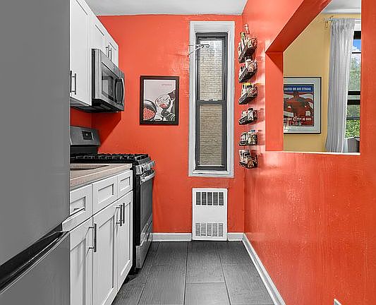 Apartment 3H is bright and oversized one-bedroom, one-bath co-op in Flatbush, Brooklyn. The entryway has room for an office nook, plus multiple storage closets. The large living/dining room has ample room for a living room set and a full-sized dining table. The king-size bedroom is spacious and sunny.