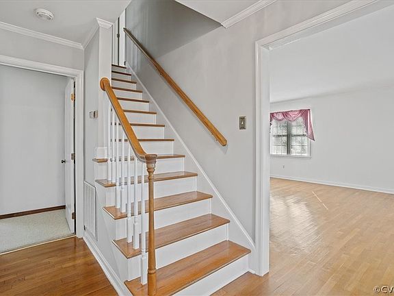 Best kept secret area in Prince George County. This area is so quiet and serene. This well-maintained home is move in ready and beautiful with new paint inside and out. Gorgeous original hardwood flooring welcomes you into this home with a stunning wooden staircase. The main level offers a spacious living room and dining room with beautiful bay window that allows so much natural light into the home. The kitchen offers ample counter space and is open to the family room with a beautiful brick fireplace that offers a woodstove for added warmth on these colder winter days. Additionally, there is a full bathroom with a walk-in shower. There is a bedroom located on the main floor which offers a flexible space for a needed bedroom, office or child's play area. At the top of the staircase, you will notice a wide-open primary with an ensuite full bath with a bathtub. The additional 2 bedrooms are nice sized with unique building additions for your family. A built-in desk and unique closet design help make these rooms one of a kind. Bring your family and furniture and move right in!