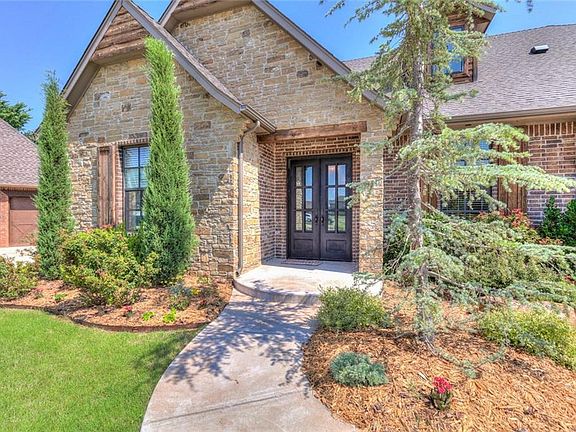 Living is easy in this beautiful home in the desirable Gated Iron Horse Community. Stunning quality throughout! Large windows across the back overlooking the greenbelt. This home has 4 beds, 4 baths, study or formal dining with sliding barn doors. This floor plan also boasts a large media room for extra living space. Cathedral ceiling in the living room with magnificent rock fireplace. GORGEOUS finishes and fixtures throughout. A cooks and entertainers dream kitchen with a double island for prepping and tons of storage, butler's pantry between kitchen and formal dining. Kitchen open to family room and breakfast area. Luxurious main level master suite with double vanities, over sized closet with built-ins, and huge custom tiled shower. Enjoy the outdoors on the covered over-sized patio overlooking your oasis. Back yard is private and peaceful with view of trees and greenbelt. 3 car garage with Storm Shelter, granite throughout, cul-de-sac lot and Edmond Schools. New Carpet coming soon