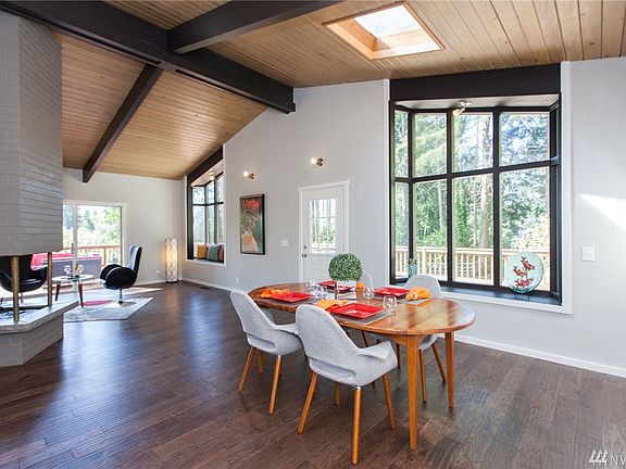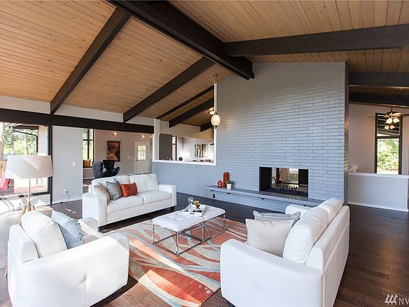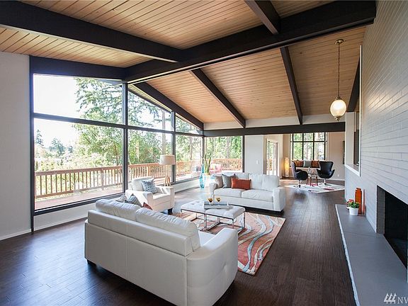 Beautifully updated home with a HUGE wooded & private lot. The welcoming floor plan is accentuated by gleaming hardwood floors and large bright windows. Modern pro kitchen includes quartz countertops, custom cabinets and SS appliances. Large Master bedroom w/ 5 piece bath & walk in closet. Lots of natural light throughout this 4,420sf home. You will love the oversized entertainment deck and HUGE private backyard filled with fruit trees. The perfect blend of mid century meets modern design.