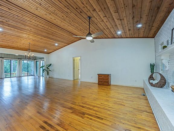 A Special Find in a Small Cluster of Unique, Custom Homes! This lovely mid-century reminiscent brick home is nestled on a quiet private road in Northeast Tallahassee off the Canopy Road of Centerville. This neighborhood is in the county and is a friendly mix of new and established residents. The home was built on the 1.7 acres for the morning sun to filter through the lush trees and established and planned yard scape to light the kitchen and sunroom. Sunsets are quiet and can be enjoyed from the span of deck that overlooks the low maintenance, human friendly yard. The floor plan is open, spacious, and convenient allowing for communal and private areas. The primary bedroom suite is on one side of the home.Two bedrooms and a bath for guests or children are on the other side of the home. Floor to ceiling windows enhance all the bedrooms. Windows span the kitchen and sunroom which allow the natural light and a lush, nestled in the trees feel. The kitchen, which overlooks the yard, has a cooking island and abundant cabinetry. The sun room, which is adjacent to the kitchen, can serve as a family dining and gathering space. The family room, adjacent to the sun room, features a unique heat form steel fireplace and lovely brick hearth that creates a large inviting area for all to enjoy. The large primary bedroom area is suite-like. It adjoins a cedar paneled room that can be a study / home office or nursery / playroom. Floor to ceiling windows bring cool north facing light into both rooms. The bath area has a step-down shower and a 2-sink vanity with a wall of counter space. The laundry room is conveniently located off the primary bath area. The walk-in closet has ample space to hang clothing and store seasonal items. The home is an appealing mix of flooring: original hardwood (living area), Mexican tile (kitchen and sunroom), newer engineered wood, stone, and a small area of carpet. The home is ready for you to furnish, paint as you like, and thoroughly enjoy!