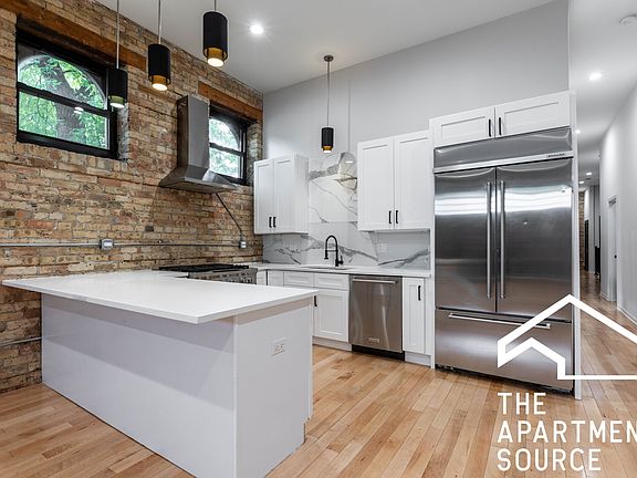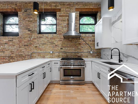 Right where Ukrainian Village and Humboldt Park converge, this is a rare opportunity to rent a condo-quality finished. MASSIVE 5000 sq ft of space. Newly gut-rehabbed owner's unit with the whole 9 yards. + 5 king sized bedrooms (3 on top level, 2 in basement) 5 bathrooms + Huge luxury kitchen with 42" cabinets, peninsula, backsplash and Commercial grade Kitchenaid appliances + TONS of storage + Luxury finishes throughout + Nest thermostat central heat and air + Private enclosed patio in back + Extra high ceilings + Tons of Exposed brick and arched windows + Absolutely unprecedented amount of storage!! Big front coat closet, big rear coat closet and huge linen closet in the center of the unit + Heated Garage Parking spot available for rent All bedrooms can accommodate king beds, have large closets and loads of natural light. Bathrooms feature large format tiles and luxury fixtures. The great room has massive picture windows and tons of space for extra sitting areas, massive dining set up, entertainment area and dog zone! The unit is pet friendly. Location is fantastic, just a block from Spinning J, Rootstock, Segnatore, Lucys, lots of boutique shops and Adam's and Sons nursery! It is also a runner and walkers paradise, just 1 block away from the park. This unit has it all! Bedroom 1: 12 4 x 10 Bedroom 2: 12 4 x 10 Primary Bedroom: 14 x 15 9 Bedroom 4: 13 4 x 11 4 Bedroom 5: 13 4 x 13