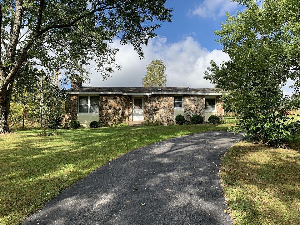 Quaint Setting with 9.5 acres. Rock/Stucco house 3 bedroom has a lot to offer, rock fireplace in the living room, large eat-in kitchen, and pantry/laundry room is great for families or entertaining. Newer hot water heater and Refrigerator. Beautifully landscaped, circle drive, sheds, fruit trees, and grape vines. Cute building just behind the house has built in Bar-B-Que, goes perfect with the amazing yard and pond. Priced to sell won't last long!