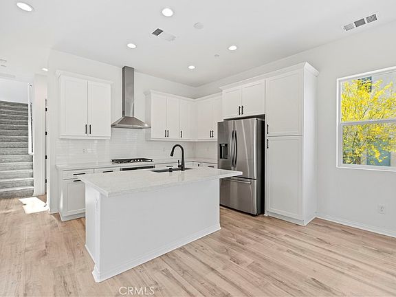 Welcome to the beautifully designed Five Point Norton Plan, a two-story almost new home that combines comfort, style, and functionality with no shared walls and a low HOA. As you enter through the charming covered entry, you're greeted by a spacious great room that flows seamlessly into an open dining area and a well-appointed kitchen. The kitchen features elegant white 42” self-closing cabinets with black matte hardware, quartz countertops, a deep stainless steel sink, a center island, and a walk-in pantry- perfect for both everyday living and entertaining. The first floor also includes a private bedroom with a walk-in closet and access to a full bathroom, offering an ideal space for guests or multigenerational living. Just off the 2-car garage, you’ll find a convenient storage area for added functionality. Upstairs, the expansive primary suite offers a peaceful retreat with a walk-in closet and a private ensuite bath featuring dual sinks and a walk-in shower. Two additional spacious bedrooms, including one with a walk-in closet, share a well-appointed full bathroom. Additional features include leased solar, upstairs laundry, durable wood laminate flooring throughout the main living areas. Experience the exceptional lifestyle offered by FivePoint, featuring resort-style pools with cabanas, BBQ areas, a community garden, playgrounds, scenic walking trails, breathtaking mountain views, and a contemporary clubhouse perfect for social events. Ideally situated near Magic Mountain, shopping, dining, and major freeways. This home offers the perfect blend of comfort, convenience, and community!