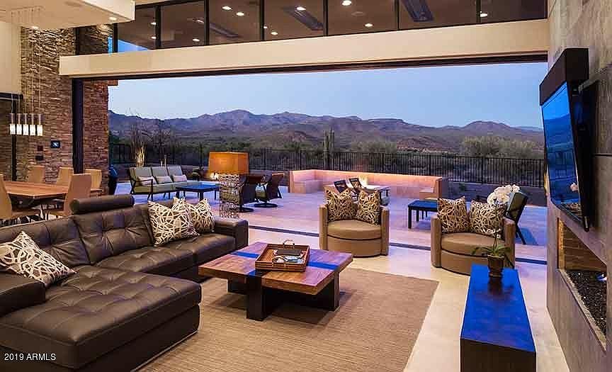 IF YOU WANT UNOBSTRUCTED VIEWS OF THE TONTO NATIONAL FOREST MOUNTAINS RANGE WITH WILD HORSES IN YOUR BACK YARD LOOK NO FURTHER! FURNISHED 4650 SQ. FT. OF CUSTOM CONTEMPORARY WITH A 32 FT. WALL OF GLASS THAT AUTOMATICALLY POCKETS INTO THE WALL. TRAVERTINE FLOORS IN ALL THE RIGHT PLACES, WOOD FLOORS IN THE MASTER, & CARPET IN THE MEDIA ROOM & ONE BEDROOM. ALL THERMADOR STAINLESS STEEL APPLIANCES IN THE KITCHEN INCLUDING 2 DISHWASHERS, DOUBLE OVEN, WARMING DRAWER, REFRIGERATOR, 5 BURNER GAS COOK TOP, WITH POT FILLER, 2 APPLIANCE GARAGES, HUGE ISLAND WITH PREP SINK, BEVERAGE REFRIGERATOR, WALK-IN PANTRY. 100 BOTTLE THERMADOR WINE REFRIGERATOR BUILT INTO A STONE COLUMN IN THE DINING ROOM, GREAT ROOM WITH 15 FT. CEILINGS CONTEMPORARY FIREPLACE. MEDIA ROOM WITH 120'' TV SEATS 8 $50K ELECTRONICS