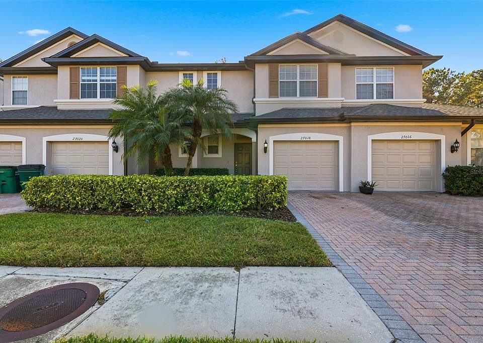 One or more photo(s) has been virtually staged. Welcome to 27018 Cool Stream Ln, a beautifully maintained two-story townhome nestled in the desirable Seven Oaks community of Wesley Chapel. This spacious 3-bedroom, 2.5-bathroom residence offers 1,706 square feet of comfortable living space. Step inside to discover an open-concept floor plan featuring a large family room, wood-style flooring, and a modern kitchen with granite countertops, stainless steel appliances, and warm wood cabinetry. Upstairs, a spacious primary suite includes dual closets and an ensuite bath with a double vanity and walk-in shower. Two additional bedrooms share a full bathroom, and the loft area offers flexible space for a home office or media area. Roof was replaced in 2025. Outside, enjoy a private covered patio with no rear neighbors and peaceful views of the green space. The Seven Oaks community offers resort-style amenities including pools, splash pad, clubhouse, tennis courts, fitness center, and scenic walking trails. Conveniently located near shops, dining, and top-rated schools, this move-in ready home blends comfort, space, and lifestyle.