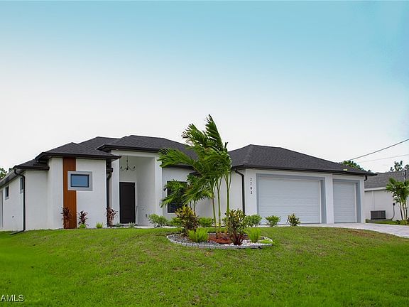 Step into this beautifully crafted, brand-new home in Lehigh Acres, offering 3 spacious bedrooms, 2 bathrooms, and a versatile den perfect for a home office or guest space. Built with meticulous attention to detail, this residence boasts impact windows, high-quality materials, and premium finishes throughout, showcasing the exceptional standards of its builder. The kitchen is a chef’s dream, featuring a stunning waterfall granite island, a double oven, and ample storage. The open layout flows seamlessly into the living area, ideal for entertaining and everyday comfort. Outside, you'll find a perfectly landscaped yard with a convenient automatic sprinkler system, and a pavered driveway leading to a spacious 3-CAR GARAGE, offering plenty of room for vehicles and storage.