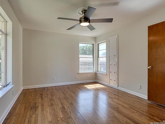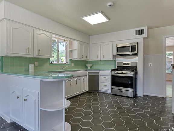 LESS than 5 miles to downtown SA, this Mid Century Modern home is MOVE IN READY! Recently refreshed but we left some of the original things like the hardwood flooring that we refinished, tile in kitchen & baths and real wood paneling to keep the vibe going! All masonry, no siding! Gorgeous oversized windows run throughout the home. Recent renovations include: Light fixtures, Plumbing fixtures, Gas range, Dishwasher, Interior Paint and Front Door. The home sits on a .20 acre, corner lot with a detached 2 car garage. Relax on the large covered back patio that overlooks a spacious backyard with Greenhouse. No carpet. The previous owner lovingly cared for this home for over 60 years! Solid home, they don't build them like they used to! Walking distance to Highlands HS and less than 5 miles to downtown SA.