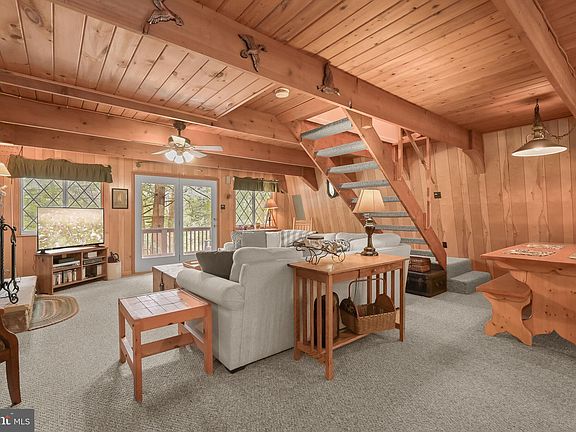 Welcome to 2702 Mayhew Inn Road, a charming Mountain Chalet tucked away in the serene Millhouse Manor community, just a short stroll from Deep Creek Lake. Nestled on a private .46-acre wooded lot, this idyllic retreat offers the perfect blend of tranquility and convenience, with an expansive wrap-around deck, balcony, and hot tub awaiting your enjoyment. As you step inside, you're greeted by the warmth of rich wood walls, ceilings, and exposed beams that adorn the main living area. The open-concept layout seamlessly connects the living room, complete with a cozy fireplace, to the casual dining area and eat-in kitchen. With access to the rear deck, this space is perfect for entertaining or simply relaxing amid the beauty of nature. A convenient full bath completes the main level. Venture upstairs to discover the primary bedroom, featuring hardwood floors and balcony access, where you can start your mornings with a breath of fresh mountain air. Two additional bedrooms and another full bath offer ample accommodation for family and guests. The basement walkout level provides laundry facilities and additional storage space, ensuring convenience and functionality. Outside, take advantage of your lake access and indulge in all that Deep Creek Lake has to offer. Whether it's swimming, boating, or simply soaking in the stunning scenery, Millhouse Manor provides the perfect backdrop for outdoor adventures. With incredible parks just a stone's throw away, there's no shortage of opportunities for recreation and relaxation. Escape the hustle and bustle of everyday life and embrace the peaceful mountain lifestyle at 2702 Mayhew Inn Road. Your dream retreat awaits amidst the natural beauty of Deep Creek Lake and the surrounding wilderness.