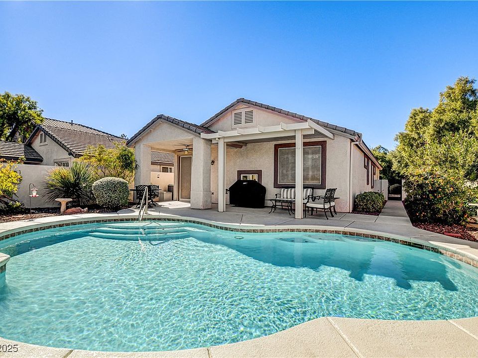 "Willow's"**Former Model Home Walk** Welcome to Summerlin's Secret**NO 2 homes alike**GATED**1 story**Sparkling POOL*NO Homes behind**Culdesac Lot**Plantation Shutters T/O**Composition Granite in Kitchen****Solar Screens** Electric Rolladen Shutters over sliding door*** Extra Insulation and Attic Fan=Energy Eff**3rd bedroom has office Built-ins** Extended Covered Patio**Ceiling Fans T/O***Luxury Vinyl Plank Wood in all areas**Grassy Islands**STEPS from 12 Acre Willows Park/Pool/Community Center*Top rated schools** Close to Downtown Summerlin with 125 Shops and restaurants** Summerlin Social Calendar** SID Paid OFF**