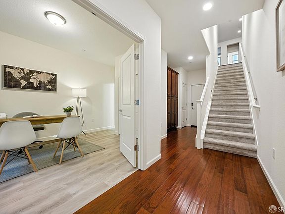 Welcome to 2702 Urbino, a beautifully maintained 3BR/3.5BA townhouse-style condo in San Jose's desirable Communication Hill. Built in 2015 by Lennar, this east-facing home offers fresh interior paint, stunning mountain views, and a functional tri-level floor plan. Enjoy an upgraded kitchen, elegant wood flooring, and abundant natural light throughout. The entry level includes an office/guest bedroom suite, storage space, and an attached 2-car garage with epoxy floors, bike racks, and a water softener. The main level features open living and dining areas, a private balcony, and a modern kitchen with ample counter space, generous cabinetry, and high-quality finishes. Upstairs, you'll find a laundry area, a secondary suite, and a spacious primary suite with a walk-in closet and built-in shelving. Each bedroom has its own full bathroom. Additional highlights include a triple-zone thermostat, reverse osmosis drinking water system, and whole-house water softener. Conveniently located near Monticello shops, dining, parks, schools, major Silicon Valley employers, and public transit, with easy access to Downtown San Jose.