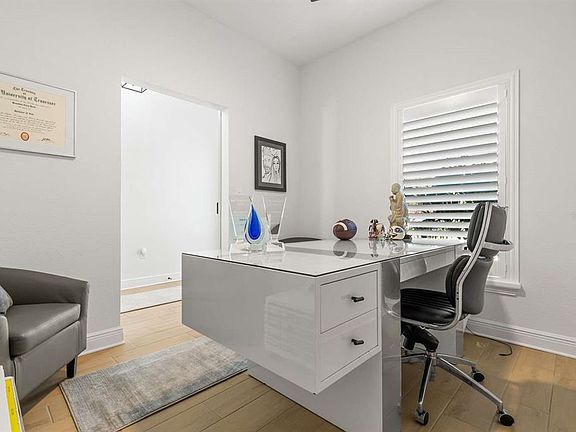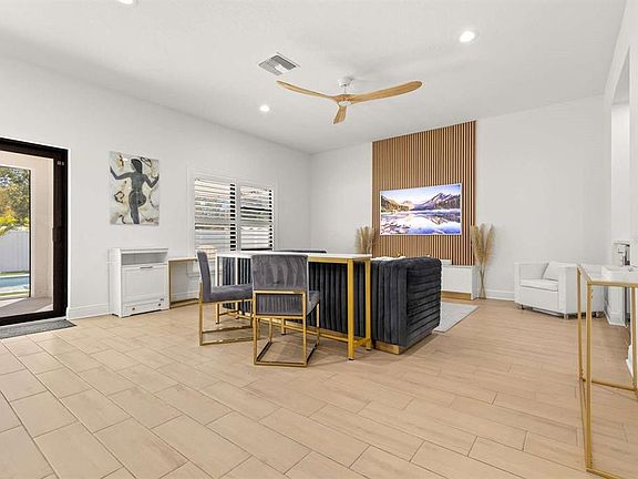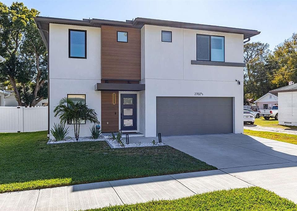 This one year old new construction home is the perfect opportunity for you! This meticulously maintained "like new" home boasts 5 bedrooms, 2.5 bathrooms, 2 car garage and over 2,000 sq ft of living space. You'll be sure to fall in love with the modern coastal aesthetic and beautiful finishes throughout the home. There are numerous upgrades throughout the property including plantation shutters, high end appliances, designer fixtures and finishes, SimpliSafe security system. The layout is perfect for entertaining with an open concept kitchen, living area, and custom built-in bar. Outside you will find an oversized screened-in covered lanai (w/retractable screens) and large fully fenced in backyard to enjoy the amazing Florida weather. Backyard includes brand new pool surrounded by turf and your own putting green. Head upstairs to find the expansive owner's retreat with a massive walk in closet and pristine bathroom. Down the hall are two additional bedrooms, walk in laundry room, and full bathroom. You will also find a bonus / media room equipped and wired for 3 TVs and built in coffee bar with fridge. Also has a built in gym in the garage that retracts to still fit 2 cars. This centrally located West Tampa gem won't last long, get in before it's gone! Owner is a licensed Real Estate agent.