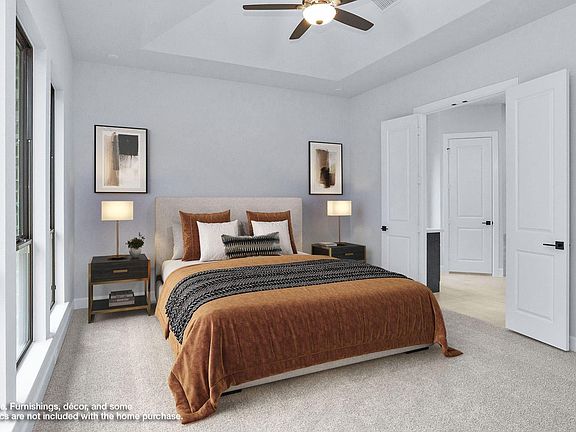 READY FOR MOVE-IN! Step off the front porch and enter the extended entryway. French doors off the entry open into the home office. Just past the home office, you'll discover the game room, also accessible through French doors. The large living room features inviting natural light from a wall of windows. The kitchen showcases a large island with built-in seating and an oversized pantry. The dining area, surrounded by windows, opens onto the covered backyard patio. The primary bedroom, situated just off the dining area, offers a retreat with three large windows. The primary bathroom boasts dual vanities, a garden tub, a large glass-enclosed shower, two walk-in closets, and access to the utility room. Secondary bedrooms towards the front of the home feature walk-in closets and full bathroom. A private guest suite, complete with a linen closet and full bathroom, is located just past the alternate entrance to the utility room. Completing the home is a mudroom just off the three-car garage.