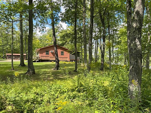 Take the long and winding road! Soak in the soothing rippling waters, all the nature, privacy and quiet you desire at this one of a kind property! Truly an amazing property-you can have it all here! 400' of lakeshore frontage and 12 wooded & secluded acres, literally tucked in at the end of a dead-end road, on the pristine waters of Townline Lake. This year-round home is in mint condition, with a lakeside porch and deck, cozy wood stove, accompanied by a 25x18 insulated garage, huge 20x12 "hunters shack" to use as shop or hobby structure to fit your needs, darling little bunkhouse, multiple sheds & carport. Compliant septic. Washer/dryer are in main floor bathroom. This property could be split and sold separately --- $130,000 for the approx. 5.8 vacant lakeshore lot with bunkhouse, and $260,000 for the approx. 5.27 home with lakeshore and buildings.