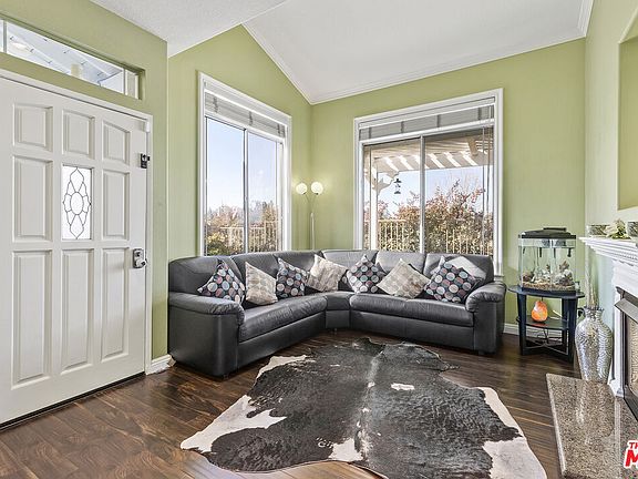 Discover this rare 3-bedroom, 2.5-bath townhome in Valencia, featuring 1,334 square feet of living space and unrivaled privacy with no rear neighbors and only one shared wall. Enjoy a private entrance that opens to a spacious wrap-around patio with picturesque park views. Step inside to an inviting living area highlighted by hardwood floors and a two-sided fireplace as the focal point. The open kitchen boasts a breakfast bar, granite countertops, and stainless steel appliances. Upstairs, the primary suite offers a dual sink vanity and a spacious walk-in closet, complemented by two additional bedrooms and a full bath.Additional features include fresh paint, Ecobee4 smart thermostat, whole house water filtration system, dual-pane windows, and an attached 2-car garage with direct access and storage. Located in the desirable Montana Townhomes, you'll be near Blue Ribbon schools, parks, dining, Bridgeport Marketplace, and miles of paseos. This townhome is the perfect blend of comfort and convenience!