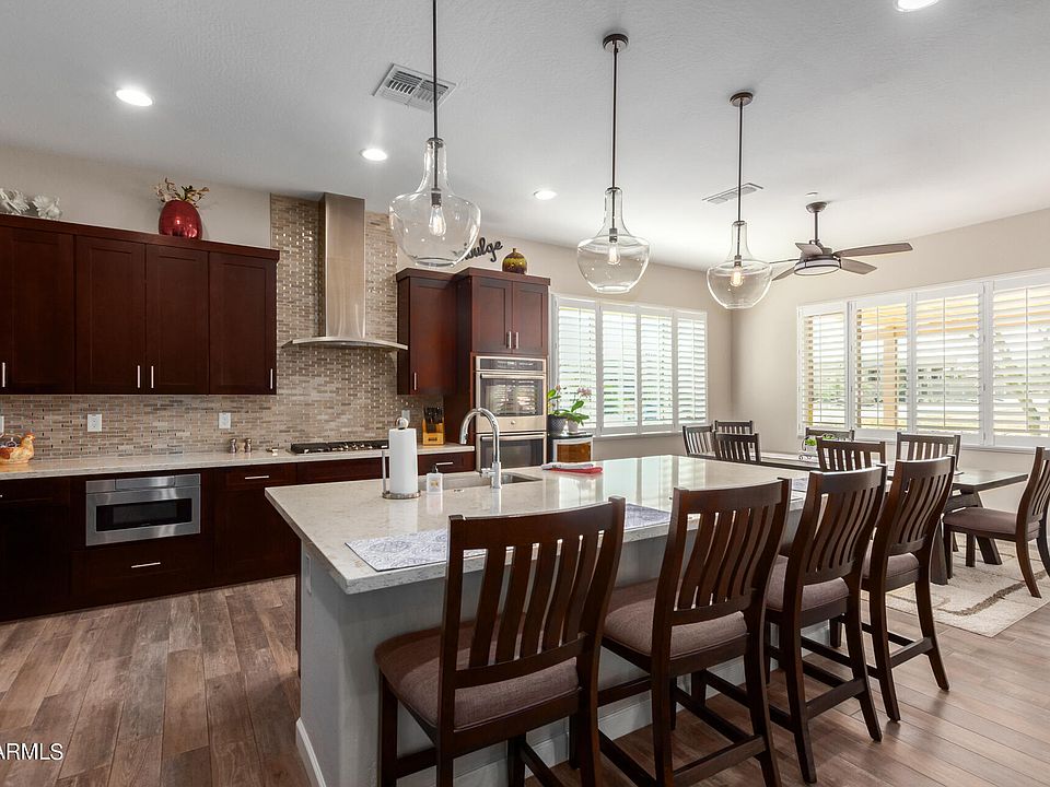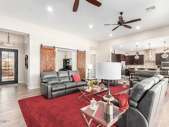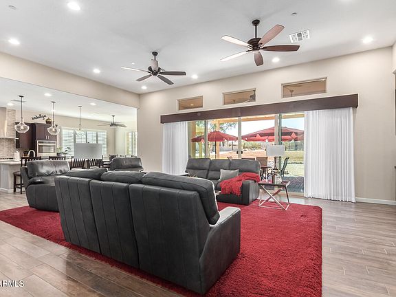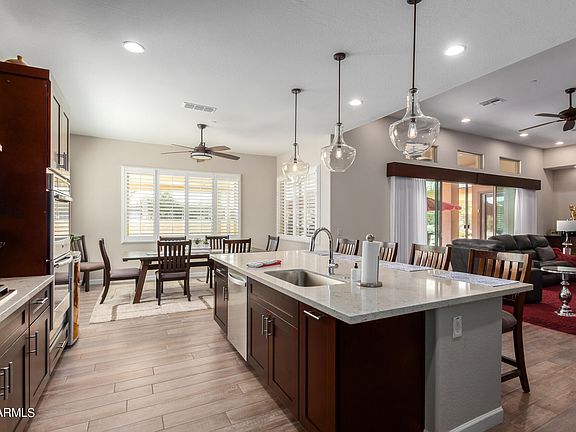Experience the best single-level living in this magnificent greatroom floorplan in the highly sought-after Tonto Verde 55+ golf community. Nestled on a huge premium corner lot, this beauty flaunts stone detailing, a 3-car garage, an extended paver driveway, a spacious front yard, & a gated courtyard great for welcoming guests. You'll love the immaculately designed interior enhanced with high ceilings, recessed & chic light fixtures, ceiling fans, a floor-to-ceiling stone fireplace, wood-plank tile flooring, & multi-sliders to the back patio. The heart of this house is the stunning eat-in kitchen, outfitted with quartz counters, a mosaic tile backsplash, SS appliances, plantation shutters, rich wood cabinetry, a walk-in pantry, an oversize island with a breakfast bar & Breakfast room. Primary bedroom with sitting area, plantation shutters, & french door to the covered patio. Primary bath with double sinks, walkin shower, free standing soaking tub, and huge walkin closet. Split Guest bedroom with a private patio & full bath, could be a second primary bedroom with a large walkin closet. Powder room off the great room for guests. A beautiful $1,650,000 house with pool is being built behind this home.