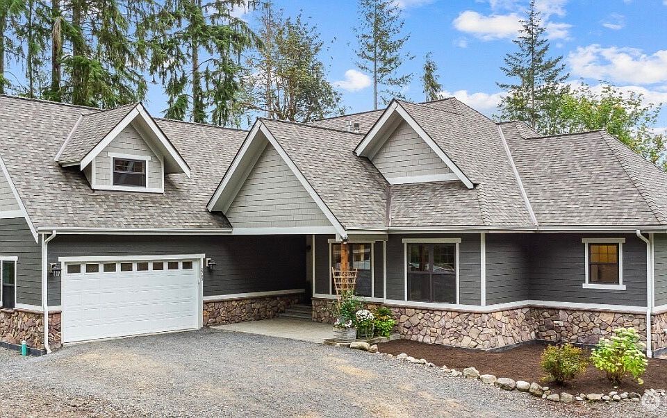 A rare NW retreat where modern luxury blends seamlessly with timeless craftsmanship. Nestled on 5.5 acres beside 1,000+ acres of preserved DNR land, this 2,571 sq. ft. home offers 3 bed, 2.5 bath, a dedicated office & a versatile loft. Soaring ceilings, granite counters, hardwood floors and solid wood cabinetry complement the chef’s kitchen with ss appliances, gas stove & double oven. A two-sided fireplace creates warmth between living & dining, opening to a covered deck w/ hot tub hookups & serene, unobstructed views. The main-floor primary suite is a private sanctuary with spa-inspired bath, enhanced soundproofing, and deck access. With expansive storage, RV hookups, 400-amp service & generator backup, this estate is elegant and enduring.