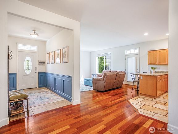 Beautiful home w/all the amenities in one of the most desirable areas of Olympia. Welcoming front porch & entry w/tall ceilings, large kitchen w/granite counters, roomy peninsula, oak cabinetry, fireplace, beautiful French doors to the main level office. Upstairs find 4 spacious bedrooms including primary suite and massive bonus 4th bedroom for private sanctuary, gym, home theater, you name it. Upgrades & architectural details throughout like hardwood flooring, millwork, and more. Efficient heating & cooling. Next to greenbelt for privacy, fully fenced, large deck & low maintenance yard. Only a short walk or drive to Oly schools & parks, mins to downtown Olympia & I-5.