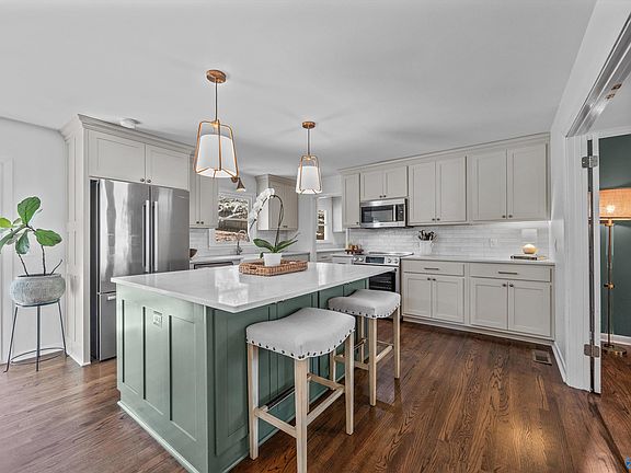 - Features: Crown Molding, Eat-in Kitchen, Kitchen Island, Pantry, Smooth Ceiling, Wood Floor, Quartz