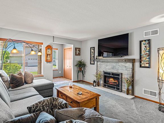 Feel at home as you step into this beautiful 3-bed, 2.5-bath townhome--complete with a peaceful backyard that attracts an abundance of wildlife. The main floor combines comfort and convenience with a spacious living room, cozy fireplace, large eat-in kitchen perfect for gatherings, laundry room, and stylish half bath. Upstairs, you'll find three generous bedrooms and two full bathrooms, including a large master suite w/ beautiful tiled walk-in shower and a spacious walk-in closet. The lower level is ideal for entertaining or relaxing, featuring a wet bar, above-grade windows for natural light, and space for a home gym or game night hangout. Tucked in a quiet cul-de-sac, this home also offers a private deck, 2.5-car garage, and an unbeatable location--just 5 minutes from the airport!