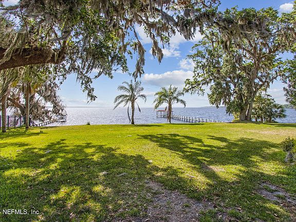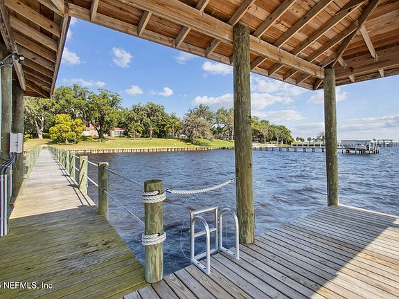 Come cool off this Summer and experience refined riverfront living in this stately all-brick estate perched on a natural bluff along the St. Johns River. Set on 2.4 acres with approximately 219 feet of frontage this home offers breathtaking sunrises and deep water access suitable for most sailboats. The private dock includes a covered boat slip with a 10,000 lb lift, bulkhead, and electric service. Inside the main home is 4 bedrooms 4.5 baths and boasts five fireplaces, a grand living room with sweeping river views, and a richly appointed library with wet bar. The luxurious primary suite features a sitting room with FP and expansive river views ,a marble  FP in the bedroom, dressing room, and a spa-like bath with sauna. A separate apartment includes its own living room, kitchenette, full bath, and bedroom. Additional highlights include an artesian well, RV parking with electric, whole-house water filtration, gardener's half bath, and mostly Pella windows throughout.  Don't  miss out ! Exterior Gardner's half bath.