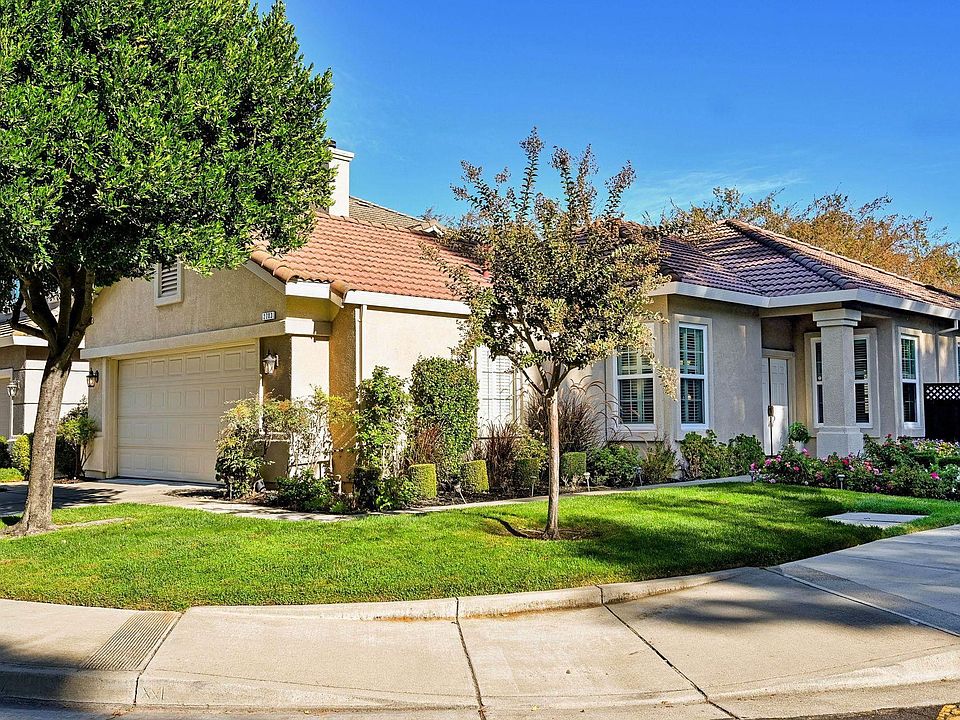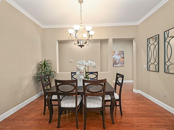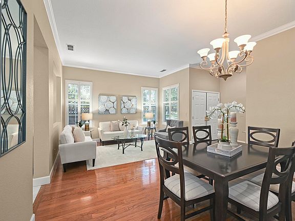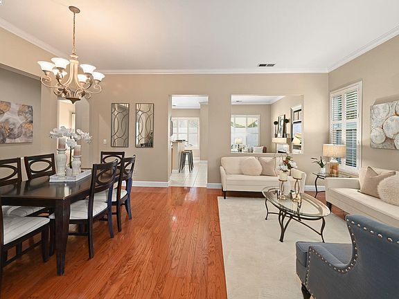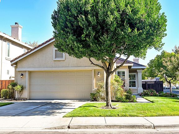 Discover the epitome of sophistication, yet casual living as you enter this desirable single story home in the popular neighborhood of Stoneridge Park! As you enter, be greeted by a light-filled airy interior adorned with high ceilings, hardwood flooring, plantation shutters, crown moulding and neutral colors throughout! The well-appointed eat-in kitchen/family room combo features granite countertops, stainless steel appliances, island with sink, built-in desk, an abundance of cabinet space & cozy wood burning fireplace! This impressive home boasts 3 spacious bedrooms, including a luxurious primary suite with newer carpeting, sliding doors to access the backyard and large closet with built-in shelves and drawers; primary bath with walk-in shower and double vanities! Situated on a desirable corner lot, the low maintenance backyard features a tasteful wraparound stamped concrete patio and lovely landscaping including mature plants & trees. Enjoy the conveniences of Amaral Park and award-winning Mohr Elementary! This home seamlessly combines luxury, comfort and style, offering an exceptional living experience. WELCOME HOME!