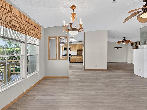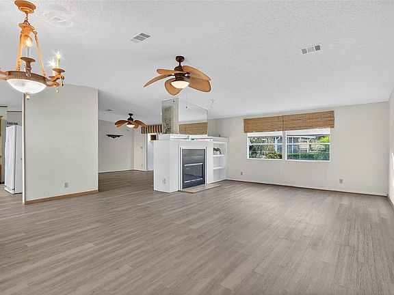 ENJOY EASY ACCESS up the HANDICAP RAMP into this Spacious 3 bedroom 2 bath home with BRAND NEW LAMINATE FLOORING THROUGH OUT. 2023 A/C, 2016 Shingle Roof, PET FRIENDLY, DOUBLE CARPORT/DRIVEWAY. This Palm Harbor Model features a 15x18 Formal Living Room AND a 15x18 Family Room with a Passthrough Wood burning Fireplace. 10 x 8 Formal Dining Area flows into the Eat-In Kitchen Nook 10x9 then into the 10x11 Kitchen with a Island Bar for even more seating. Perfect for large Family gatherings. Then to top it off, you have an 11x13 All Season Porch off the Family Room with Glass/Screened Windows and a wall A/C unit. Can you picture how many guests you could have! Hugh Main Suite 14x16 with one whole wall that encompasses a deep, long walk in closet. Plantation shuttered Bay Windows across one wall lead into your spacious 13x16 EnSuite with Dressing/Make-Up area & glass door shower enclosure. More counter/cabinet space than you will need. All the way on the other end of the home are your other 2 spacious bedrooms, each with large closets. Spacious Guest Bath with another Glass Enclosed Shower. Indoor Laundry Room 13x16 with Maytag Washer/Dryer & wet sink, lots of extra storage. This Unique floorplan won't last long. Priced below Market, so schedule your appointment tour ASAP.