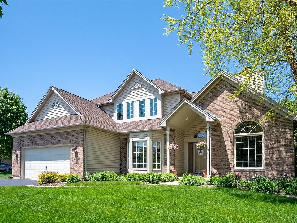 Meticulously maintained and updated home in desirable Sterling Manor. Large landscaped corner lot complete with fenced yard and stamped concrete patio. Newer roof and siding, plus new windows. Step inside to find vaulted ceilings, new hardwood floors, new carpet, and neutral modern decor. Inviting living room with French doors and multi-sided gas log fireplace. Formal dining room. Eat-in kitchen complete with new granite countertops, stainless steel appliances and cabinetry. Two story family room with fireplace. 1st floor den could easily be 5th bedroom. Upstairs, bedroom sizes are generous and include the master suite offering a walk-in closet and deluxe bath with whirlpool tub, separate shower and double bowl vanity. Providing even more living space is the finished basement with huge rec room. Ideal location close to park, walking paths, Peck Farm and Geneva Middle Schools. Bus stop right outside! Extra deep garage with room for workbench. Do not miss this one - MUST SEE!