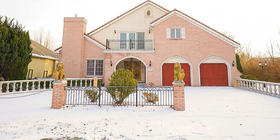 Lot & garage: The property sits on a mature, tree-lined lot (~0.29 acres) with a large 2-car attached garage, tile roofing, and the circular drive adds to the stately presence.