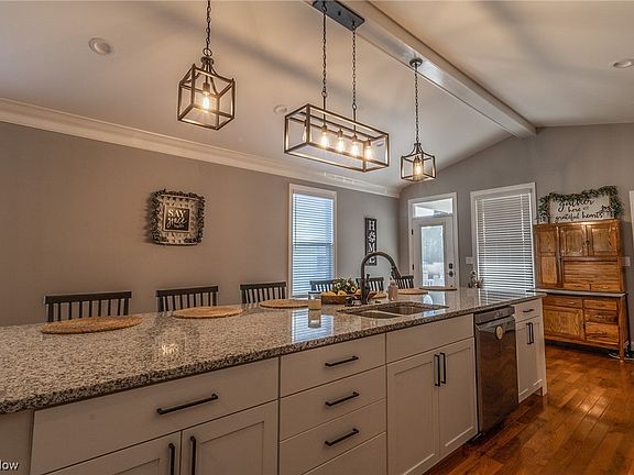 One floor, easy living at it's finest! This stunner was built in 2021 and no details were spared. Truly a must see! Enjoy this open concept, custom home boasting large windows, high ceilings, crown moldings, custom lighting and gorgeous hardwood flooring throughout. The galley style kitchen is stunning with granite countertops, upper end appliances and white cabinetry with soft close drawers. A water filtration system and water softener have recently been installed as well. The great room includes a stunning gas fireplace and mantle as it's focal point and includes an exit to a covered and screened porch. The owner's suite is adorned with a tray ceiling, large walk-in closet, and beautiful en suite bath with a fully tiled, walk-in, oversized shower and granite countertop. The two guest bedrooms have a full bath located between them with a beautiful, tiled shower and granite countertop as well. Laundry is located on main level. This home offers tons of style, space and grandeur with the