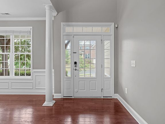 Raised-hearth gas fireplaceStep-down bonus roomDeck overlooking functional backyardWooded bufferWide plank hardwood floorsStone-accent exteriorSunny breakfast nook