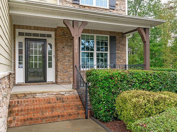 Beautiful, well maintained and thoughtfully updated home in coveted Bella Casa. Stone-accent exterior, charming rocking chair front porch and quiet private cul-de-sac welcome you HOME. Wide plank hardwood floors throughout the main level and a sun-soaked two-story foyer. Freshly painted interior and an open concept floor-plan highlight a chef's kitchen with center island, granite countertops, sleek tile backsplash, stainless steel appliances including double wall oven and 5-burner gas cooktop, seamlessly flowing into a sunny breakfast nook and large family room featuring a handsome accent wall and raised-hearth gas fireplace. Enjoy year-round living in the awesome 4-season room overlooking a fabulous tree-lined backyard. Main level also offers a 1st floor guest suite with full bath and a large dining room with extensive molding. Upstairs features new luxury vinyl plank flooring, a lovely primary suite with tray ceiling, walk-in closet and opulent en suite bath with double vanity, soaking tub, oversized shower and private water closet. Ample-sized secondary bedrooms. Step-down bonus room. Deck overlooking functional backyard with wooded buffer. New carpet runner on stairs. New storm door. EV car charger installed in garage. Top notch neighborhood amenities include 3 pools, tennis courts and playgrounds. Walk to highly rated schools. Just minutes to major highways, charming historic downtown Apex, Apex Nature Park and Seymour Athletic Fields.