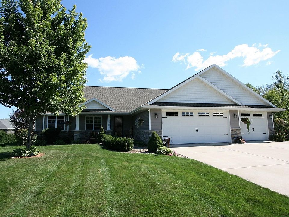 This split bedroom ranch offers an open concept w/vaulted ceilings, gas fireplace, granite counters, maple cabinets, tile backsplash, a large island along w/patio doors overlooking the tiered deck, pool, hot tub & pond. The master bedroom offers a trayed ceiling, prvt bath w/dual vanities, tiled shower & large walk-in closet. Two additional bedrooms an office, a full bath & 1st floor laundry complete the main level. The bsmt has a bedroom & room to expand w/daylight windows & piping set up for in-floor heat. Heated garage! This house has an amazing setting on a large cul-de-sac lot.
