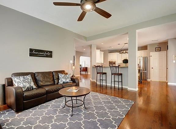 Stunning Newmark home in Steiner Ranch. Recently updated chefâs kitchen with SS range, oven, & microwave. This 4 bed/2.5 bath home includes kitchen island, granite counters, XL pantry, hardwoods, private office, extended 3 car garage w/ sink & decked attic. Master suite offers 2 walk-in closets, double vanities, garden tub, & separate shower. Upstairs loft/game room opens 2 bedroom w/ Jack N' Jill & a private guest room. The outdoor oasis features a patio, a great combination of trees, grass & playscape!