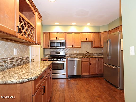 This stunning condo features an open, airy floor plan that is flooded with natural light. The tastefully updated kitchen and baths provide a modern touch, while classic design elements add charm throughout. The entrance brings you into the dramatic two-story foyer that welcomes you into the spacious living room, complete with a vaulted ceiling and a wood-burning fireplace.The adjoining dining area offers an inviting space for entertaining. The kitchen boasts granite countertops, stainless steel appliances, a pantry and a full size laundry room off the kitchen. The primary bedroom occupies its own level, featuring a walk-in closet. The second bedroom is generously sized with wood floors. The basement with high ceilings is a blank canvas, a gym, or family room! Location is close to Red Bank major transportation, such as the train, bus, ferry to NYC, close shopping, restaurants, and the beach!
