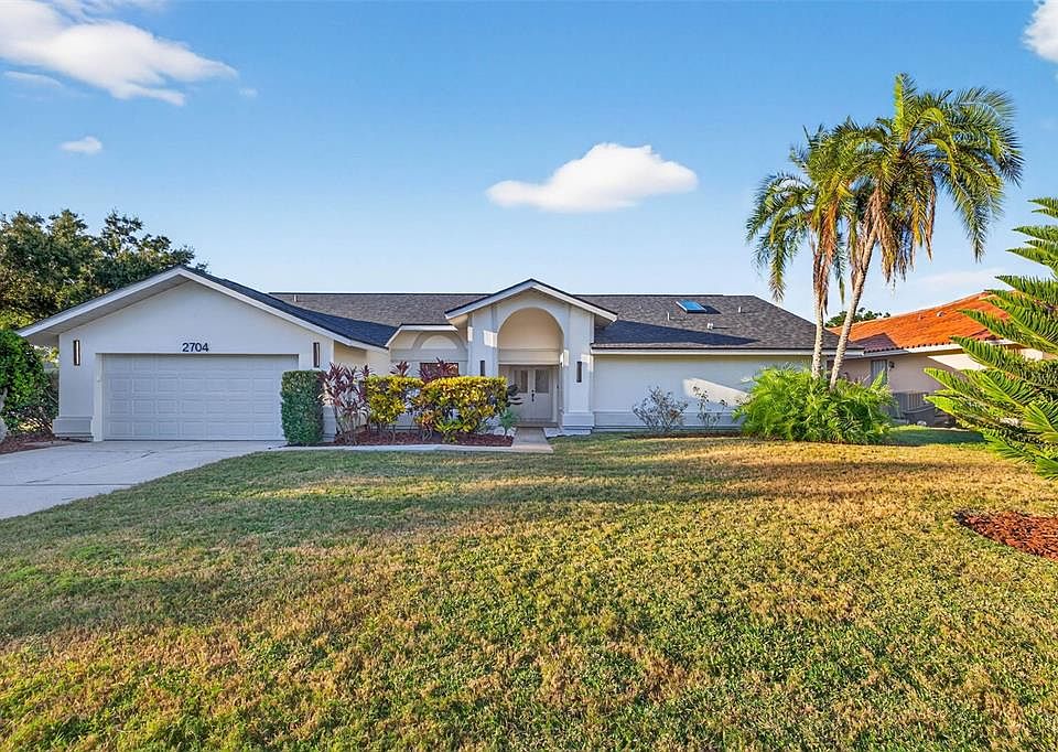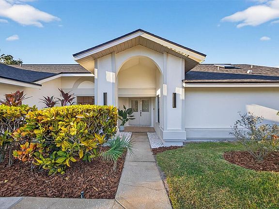 Located in one of Clearwaters most sought after neighborhoods, this 4 bed, 3.5 bath home has been beautifully renovated and sits on over a quarter of an acre lot. The homes chefs kitchen has a timeless design with white shaker cabinetry, topped with stunning waterfall Taj Mahal Quartz that also run up the backsplash and encase the range hood. The kitchen island is large in size with plenty of bar stool room for cooking and conversations. Adjacent to the kitchen there is additional cabinets that act as an extension to the main kitchen space with extra storage, a custom wooden shelf and modern sconces. The large walk-in pantry is tucked behind the kitchen for a seamless look with lots of shelving and plenty of additional storage. Off of the kitchen is the dinning space with views of the front yard and courtyard area. The home has two separate living spaces with a large living room in the front of the home and a family room towards the back. The living space in the front of the home has high vaulted ceilings and large sliders leading out to the pool and screened in lanai. The family room towards the back of home also has vaulted ceilings with beautiful exposed wooden beams creating a cozy modern feel, complete with an accent wall featuring a fireplace, exposed brick details and wooden decorative shelving. To finish it off, the space also has a wet bar area with the same finishes as the kitchen, complete with a sink, wine fridge, and wooden decorative shelves. The room has access via sliding doors to homes lanai creating the perfect indoor outdoor living combination. The home has a split floor plan with the primary suite on one side of the home and the remaining bedrooms and bathrooms on the other. The primary suite is large in size and has vaulted ceilings and access through siding glass doors to the pool and lanai. The primary suite bath resembles a luxury spa with double vanity sinks sitting in custom cabinetry and topped with Taj Mahal Quartz. The shower and soaking tub sit separately to the side in the bathroom with beautiful marble tile encasing the walls and flooring. The shower has a glass panel with black rim detailing and a separate wand in addition to the rainfall shower head. The bathroom also has a walk-in closet and private water closet. Set towards the front of the home is the 4th bedroom that could also pose as the perfect home office with double doors. The remaining bedrooms on the other side of the home are large in size with huge closets and share a common bath with double vanity sinks and tiled shower tub combo. The third full bathroom sits off of the back family room, convenient for guests, and has access to the lanai as well for the perfect pool bath. This bathroom has a standing shower with fluted decorative tiling and a rain fall shower head. The half bath is perfectly located towards the front of the home adjacent to the large laundry room with enough space to build out a drop station. The home has plenty of outdoor living space under the screened in lanai with pavers wrapping around the pool. There is also green space beyond the enclosure in the fully fenced in back yard. The home is located near the Countryside Mall and Highway 19, full of shops and restaurants. Downtown Dunedin is nearby and the Tampa International Airport and Gulf Beaches are a short drive away.