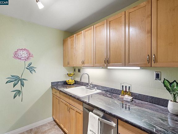 $2,000 credit towards closing costs! This beautifully updated split-level 2-bedroom condo offers the perfect blend of comfort, style, and convenience. Step inside to discover a stunning remodeled kitchen with rich maple cabinets, pull-out drawers, sleek granite countertops, and stainless steel appliances—ideal for cooking and entertaining. The open layout is enhanced by easy-care tile and laminate floors, elegant crown molding, and energy-efficient dual-pane windows that flood the home with natural light. Upstairs, two spacious bedrooms await—one with a walk-in closet, the other with mirrored closet doors. The private balcony is ideal for relaxing mornings or quiet evenings, and is nestled among serene, mature vegetation. Located in a prime Walnut Creek neighborhood, you’re just minutes from top-rated schools, the Iron Horse Trail, Walden Park, Pleasant Hill BART, major freeways, Bay Club, shopping, and dining. This move-in-ready gem combines urban convenience with suburban charm.