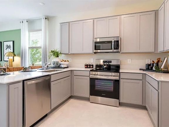 Why wait to build when you can own this never-lived-in, beautifully designed two-story former model home? As an end unit, it is filled with natural light and offers a thoughtfully crafted layout. A versatile flex space flows seamlessly into the modern kitchen, featuring 42" upper cabinets, quartz countertops, stainless steel appliances, and an open Great Room—perfect for everyday living and entertaining. Sliding glass doors lead to a covered lanai, creating an effortless indoor-outdoor lifestyle. Upstairs, two spacious secondary bedrooms share a full bath, while the private owner’s suite is tucked away for comfort. The suite includes a double-sink vanity, large walk-in shower, and generous walk-in closet. This community is situated in a rapidly growing area with excellent shopping and dining just minutes away at Posner Park. Conveniently positioned near I-4 and Highways 27 and 17, it offers seamless access to all that Orlando has to offer. Plus, Walt Disney World Resort is only 10 miles away, placing world-class entertainment right at your doorstep.