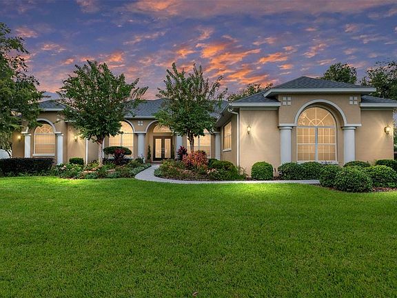 Under contract-accepting backup offers. Discover leisurely living within the sought-after gated community of Laurel Wood. This well-maintained home features a grand foyer leading into a formal living area with triple glass sliders opening to the lanai, as well as a separate dining room enhanced by architectural arches and columns. Additional spaces include an office/den that could serve as a fourth bedroom and a thoughtfully designed split floor plan. In addition to glass sliders from the main areas, both the primary bedroom and the third bath each provide a door to the lanai area. The kitchen provides functional amenities including a central island, a breakfast bar with seating, a pantry closet and a casual dining space. Recent renovations include quartz countertops, updated cabinetry and shark coating applied to both the expansive 1,532-square-foot screened lanai and the extended 718-square-foot garage floor. The property is equipped with numerous upgrades such as arched doorways, high coffered and tray ceilings, new recessed lighting in key areas, updated fixtures in the foyer and dining room, a new GE refrigerator, a KitchenAid dishwasher, vinyl fencing along the backyard, ample garage storage and a new garage door motor and springs. Energy efficiency is ensured with a newly installed roof (August 2023) and an A/C unit added in 2018. Fresh carpeting was installed one year ago. $60k in upgrades in the past year. The grounds feature a manicured lawn and recently refreshed landscaping, while the spacious yard offers potential for future pool installation. A private gated access is nearby to the city park to enjoy walking and exercising.