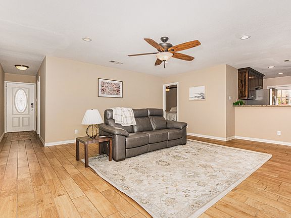 This property is one of a kind: double lot, swimming pool, garage conversion for large playroom, dining room or second living room. Lots of wonderful updates in this 4 bedroom, 2 bath home. Lots of room for garage or carport, RV parking with 3 separate gates and pad for boat or shed. Very spacious kitchen with extra wood cabinets for storage, breakfast bar. stainless appliances, granite counters, side by side fridge, 6' x 8' walk-in pantry will hold all those extras. Wood look tile throughout home, no carpet. Door to deck and side yard in kitchen. Separate closet for full size laundry. Brick, wood-burning fireplace in living room with vaulted ceiling, looks out onto pool. Covered patio. Roof about 2 years old, plumbing completely replaced in 2015 with PVC.